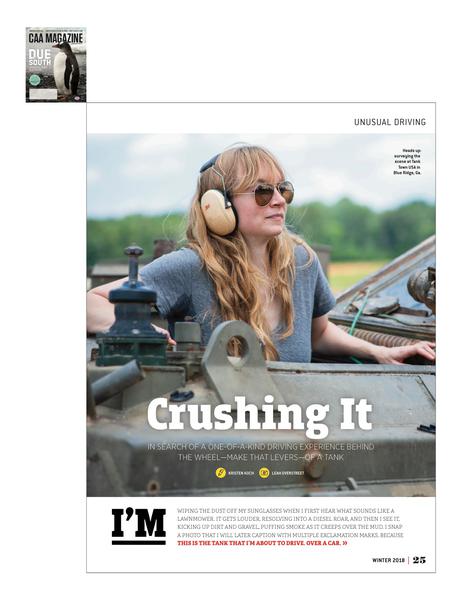 CAA Magazine • 2nd December 2018 Crushing It In search of a one-of-a-kind driving experience behind the wheel—make that levers—of a tank