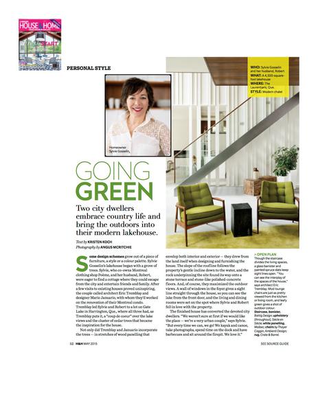 House & Home • 1st May 2015 Going Green Two city dwellers embrace country life and bring the outdoors into their modern lakehouse.