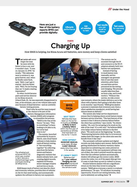 Acura Precision • 24th June 2017 Charging Up How BMIS is helping Joe Rizza Acura sell batteries, save money and keep clients satisfied