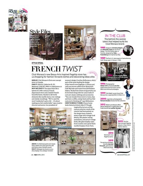 House & Home • 1st April 2015 Style Steal: French Twist Club Monaco's new Beaux Arts–inspired flagship store has us shopping for fashion-forward clothes and decorating ideas alike.